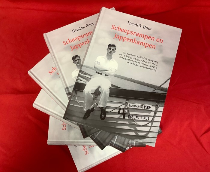 Het boek ‘Scheepsrampen en Jappenkampen’ van Hendrik Boot beschrijft het ongelofelijke maar waargebeurde verhaal van zijn vader Cor Boot. Een indrukwekkende overlevingsgeschiedenis die hij na veel research kon beschrijven. Zijn vader vertelde er bijna niets over. Beslist een boek dat gelezen moet worden! Het is een eerbetoon aan de overlevenden en slachtoffer van de oorlog op zee en het Japanse geweld in Nederlands-IndiĆ«.